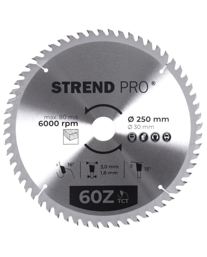 Kotúč Strend Pro TCT 250x3.0x30/20 mm 60T, na drevo, pílový, SK plátky