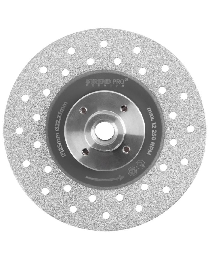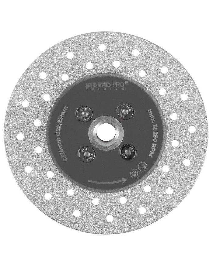 Profesionálnyviacúčelovýbrúsny a rezný kotúč Strend Pro Premiumso závitom M14 a priemerom 125 mm. Je určený do bežnej uhlovej brúsky. Primárne je určený na brúsenie, skosovanie hrán, zaoblenie materiálov a ich rezanie.Hravo si poradí s materiálmi ako: gresové a keramické dlažby a obklady, s mramorom, žulou, betónom, tehlou a podobne. Je vhodný na prácu za sucha a vďaka jeho vysokokvalitnému prevedeniu ho môžete využívať na profesionálne práce s ťažkým nasadením.