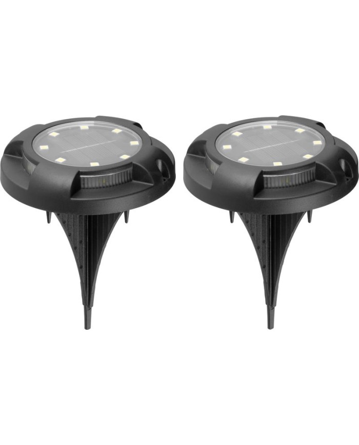Solárne svetlo Strend Pro Crater určené na použitie v exteriéri do zeme, napríklad popri chodníkoch, príjazdovej ceste či v záhonoch. Je vodeodolné, obsahuje 12 LED, farba: studená biela. Rozmer: 11x14 cm. V balení 2 ks.