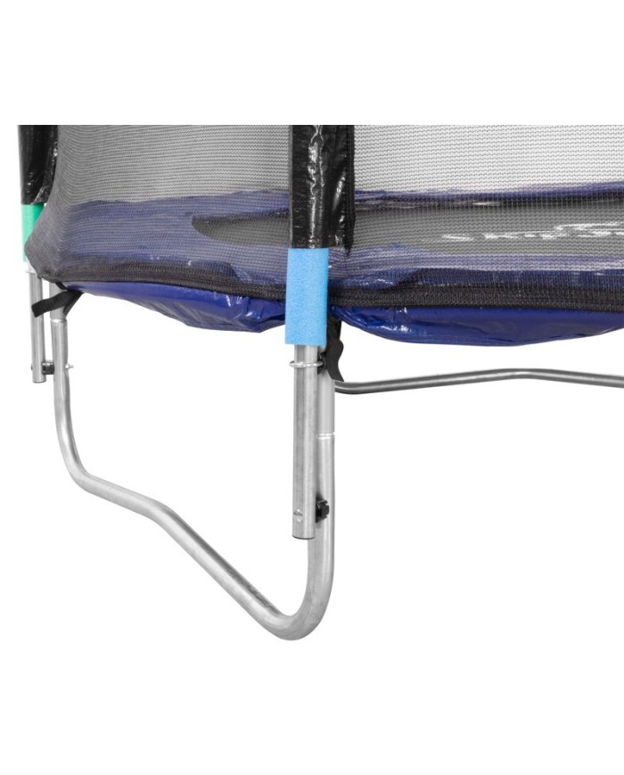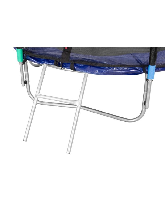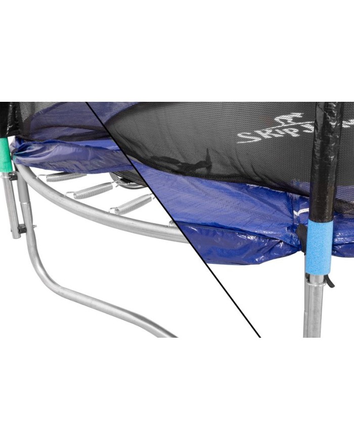 S trampolínou Skipjump zažijete veľa zábavy! Trampolína je určená výlučne na domáce používanie. Je vhodná pre deti. Maximálna nosnosť trampolíny je 50 kg. Preťaženie však môže trampolínu poškodiť! Nie je vhodná ako profesionálne náčinie. Trampolína disponuje kvalitnou polypropylénovou plochou na skákanie a pevnou, stabilnou konštrukciou vyrobenej z kalenej ocele odolnej voči deformáciám. Penová ochrana je použitá na ráme trampolíny - na tyčiach a na pružinách. Vonkajšia sieťka zabraňuje vypadnutiu. Výhodou je rebrík, ktorý umožňuje jednoduchý vstup na trampolínu.