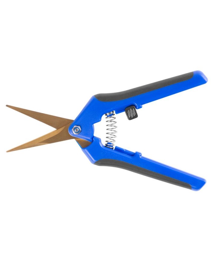 Záhradné zastrihávacie nožnice Strend Pro sú ideálne na strihanie, prestrihávanie a tvarovanie kvetín a vetiev kríkov do priemeru 3 mm. Čepeľ je vyrobená z titánu. Modro-čierna rukoväť je vybavená bezpečnostným zámkom proti otvoreniu čepele. Rozmer: 167 mm.