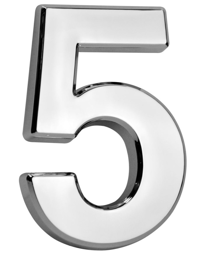 Číslo MagicHome "5" domové, s lepiacou páskou, strieborné, popisné, 70x100 mm, ABS
