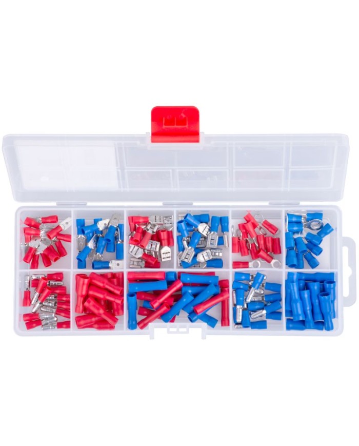 Sada elektrikárskych konektorov je použiteľná pre elektrikárov, mechanikov osobných automobilov, nákladných automobilov a stavebných strojov. Súprava je prehľadne usporiadaná v plastovom boxe.