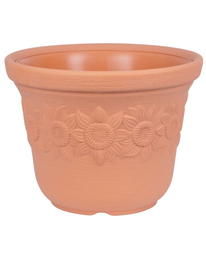 Klasický kvetináč Sunny s dekorom slnečníc v terakota farbe skrášli Váš dom. Rozmery: 57x43,5 cm.