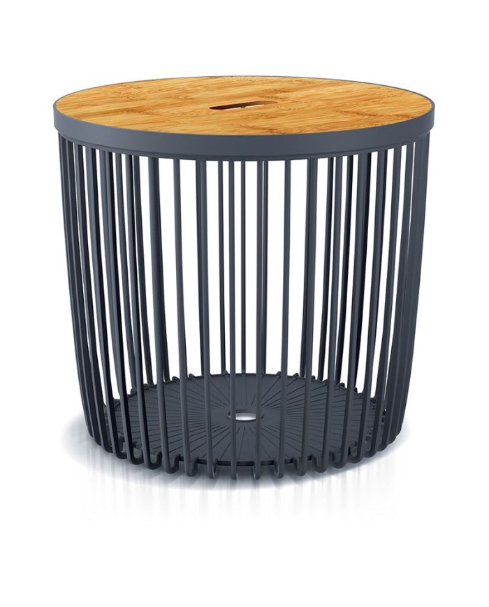 Stolík Clubo je vhodným doplnkom vášho interiéru. Slúži nielen ako stôl, ale aj ako odkladací priestor, keďže je konštruovaný v podobe univerzálneho koša s vkusným bambusovým vekom. Jeho objem je 50 litrov. Farba je antracitová. Jeho rozmery sú 450x410 mm.