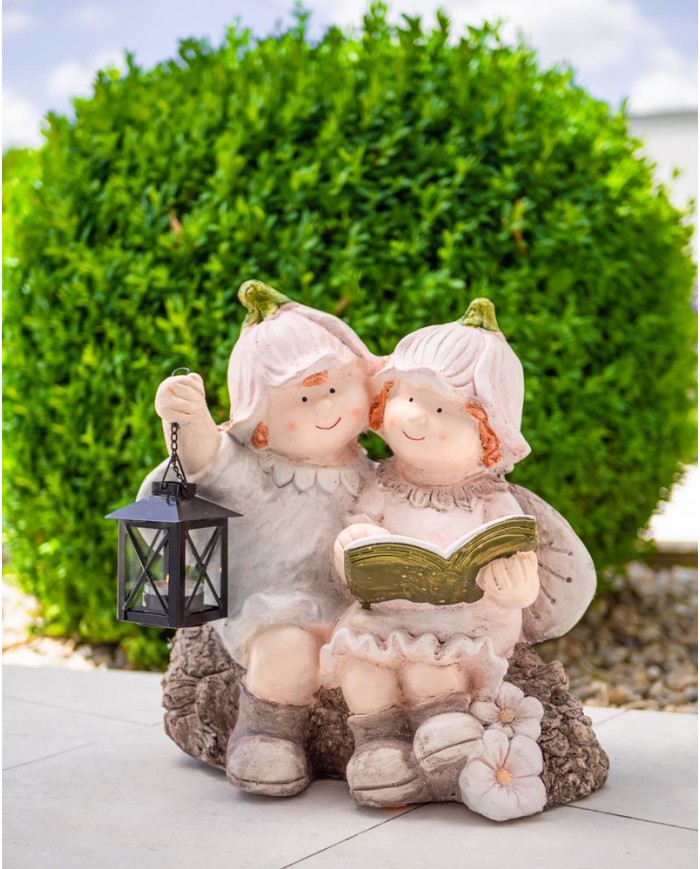 Krásna dekorácia Chlapček a dievčatko MagicHome s knihou a lampášom dodá šmrnc Vašej záhrade. Do lampášu pridajte sviečku a bude krásne svietiť. Rozmery: 32,5x20,5x35 cm.