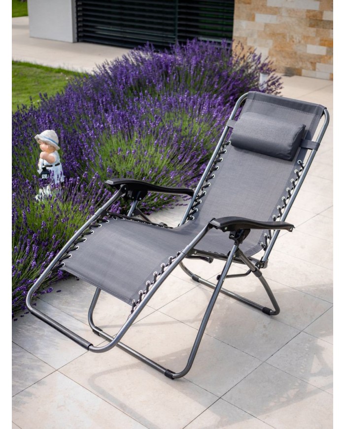 Lehátko SONORA, sivé, polohovateľné, max. 120 kg, 66x177x108 cm