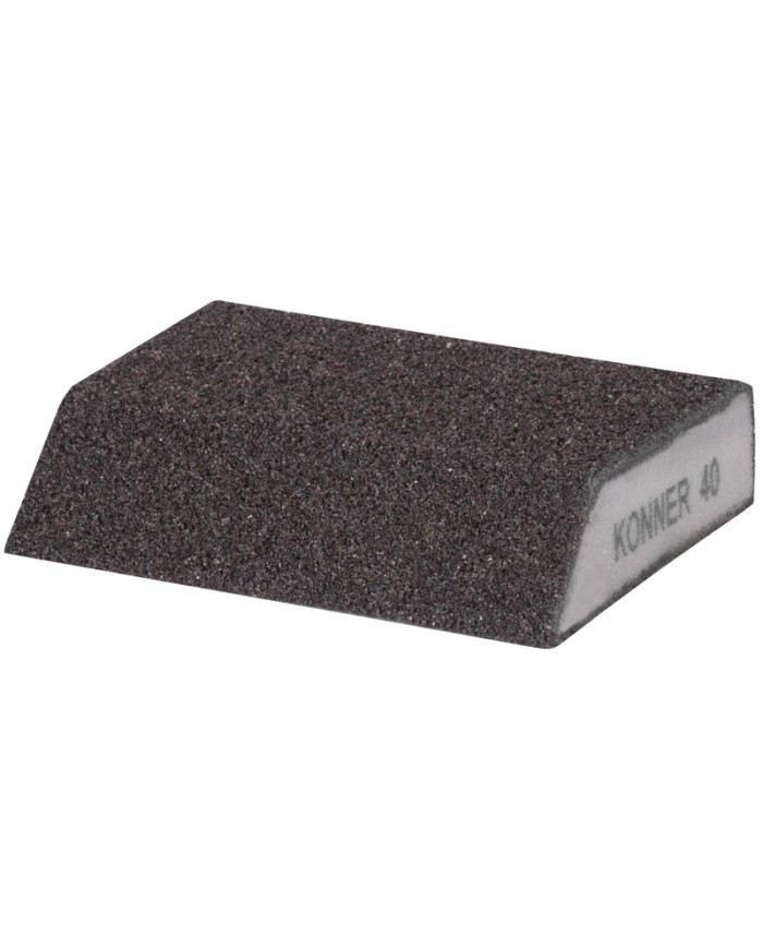 Skosená brúsna huba KONNER je určená na brúsenie sadrokartónov, kovov, plastov, dreva, náterov na tvarované alebo zakrivené aplikácie. Rozmery: 125x90x65x25 mm. Zrnitosť: G40 - vhodná pre hrubé povrchy a predprípravu.Huba je vyrobená z AluOxidu.