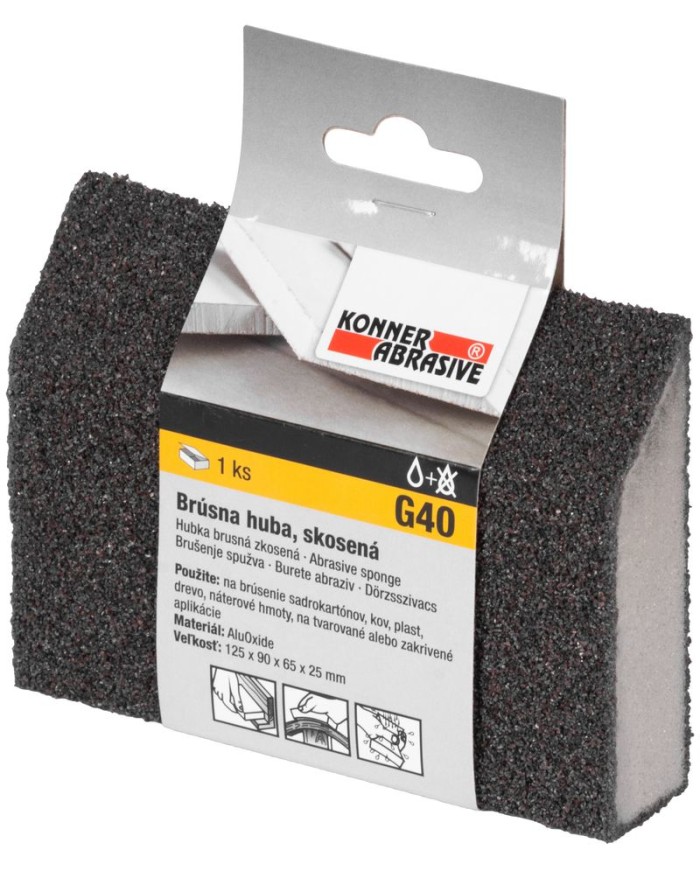 Huba KONNER G40, brúsna špongia, 125x90x65x25 mm, skosená