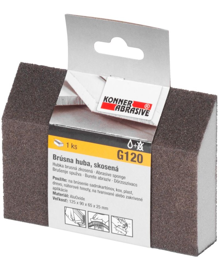 Huba KONNER G120, brúsna špongia, 125x90x65x25 mm, skosená
