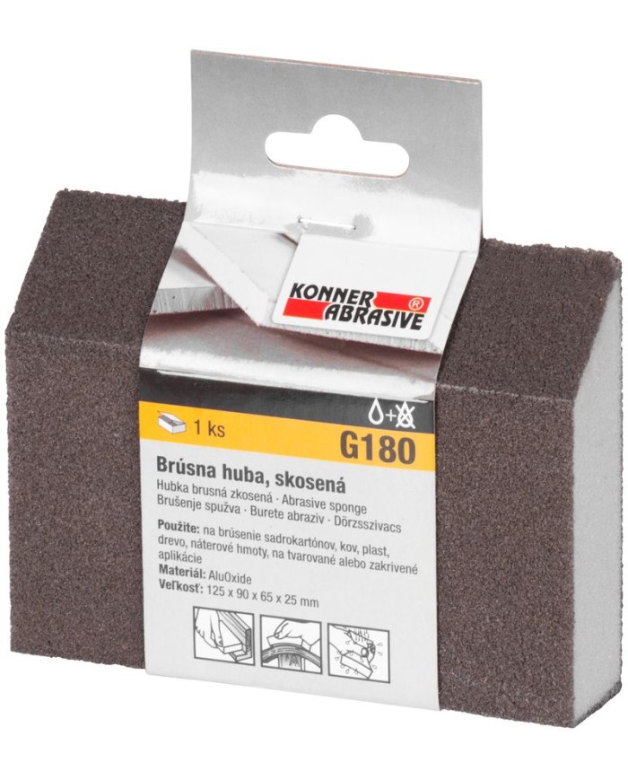 Huba KONNER G180, brúsna špongia, 125x90x65x25 mm, skosená