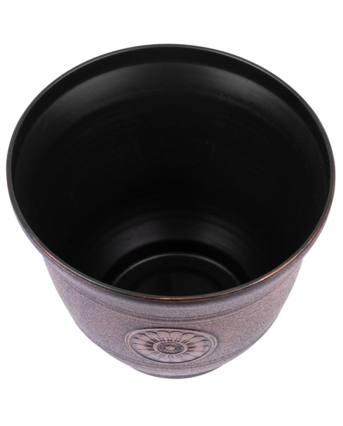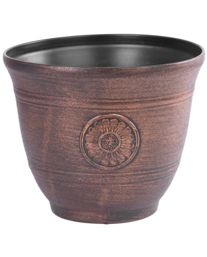 Dizajnový kvetináč s efektom kovu je skvelou voľbou pre akúkoľvek záhradu, terasu, alebo balkón. UV stabilný. Farba: medená. Jeho rozmery sú 30x25 cm.