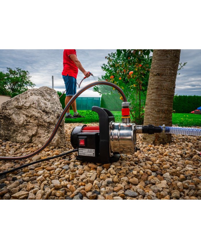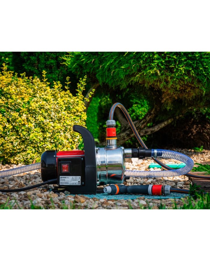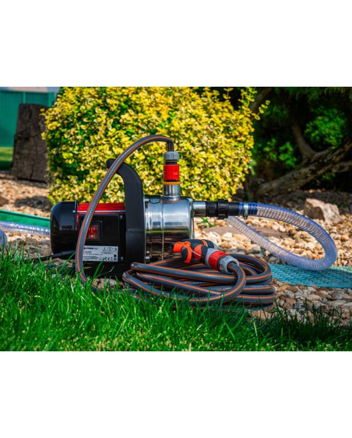 Záhradné čerpadlo s príslušenstvom je skvelým pomocníkom na čerpanie čistej,dažďovej alebo chlórovanej vody (napr. v plaveckých bazénoch). Najčastejšie sa záhradné čerpadlo používa na zavlažovanie a zalievanie, prečerpávanie a vyčerpávanie nádrži (napr. plaveckých bazénov), čerpanie vody zo studni, sudov na dažďovú vodu a cisterien. Čerpadlo disponuje výkonným motorom s príkonom 1000 W, ktorý je poháňaný elektrinou zo zdroja s napätím 230 V. Do prípojky čerpadlo zapojíte pomocou napájacieho kábla, ktorý je dlhý 1,2 m. Čerpadlo poskytuje prietok 3 400 l vody za hodinu a maximálny výtlak 44 m. SET obsahuje : čerpadlo, saciu hadicu 1“ x 3,5 m, 3-vrstvovú záhradnú hadicu 1/2“ x 7 m, 2x rýchlospojka 1/2“ a nastaviteľnú trysku s 2 funkciami.