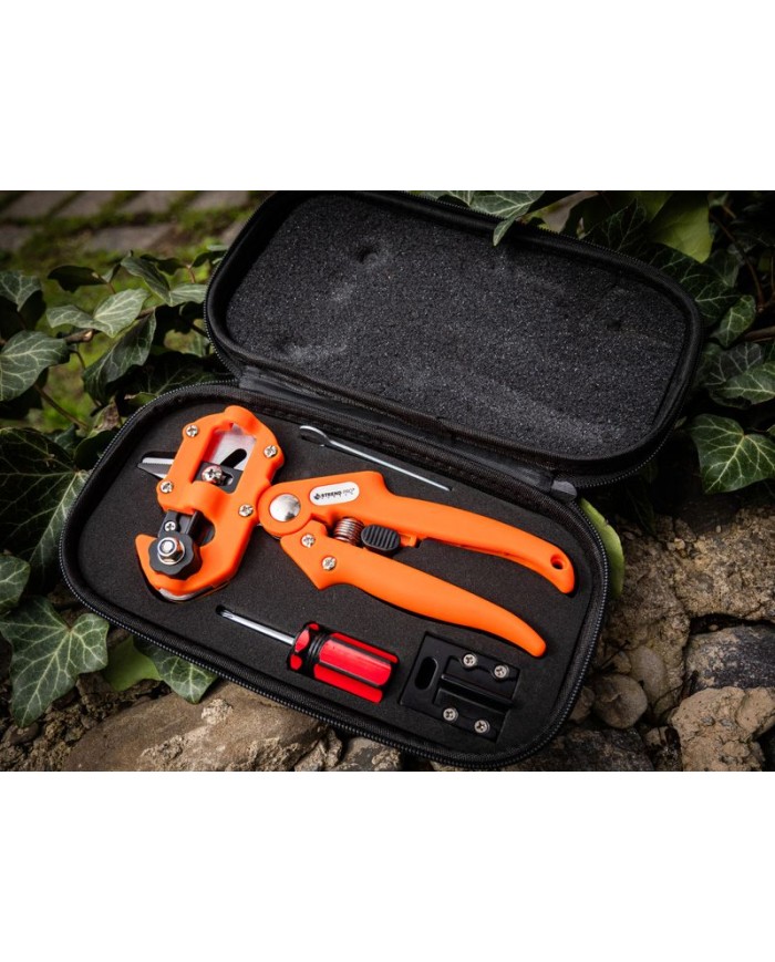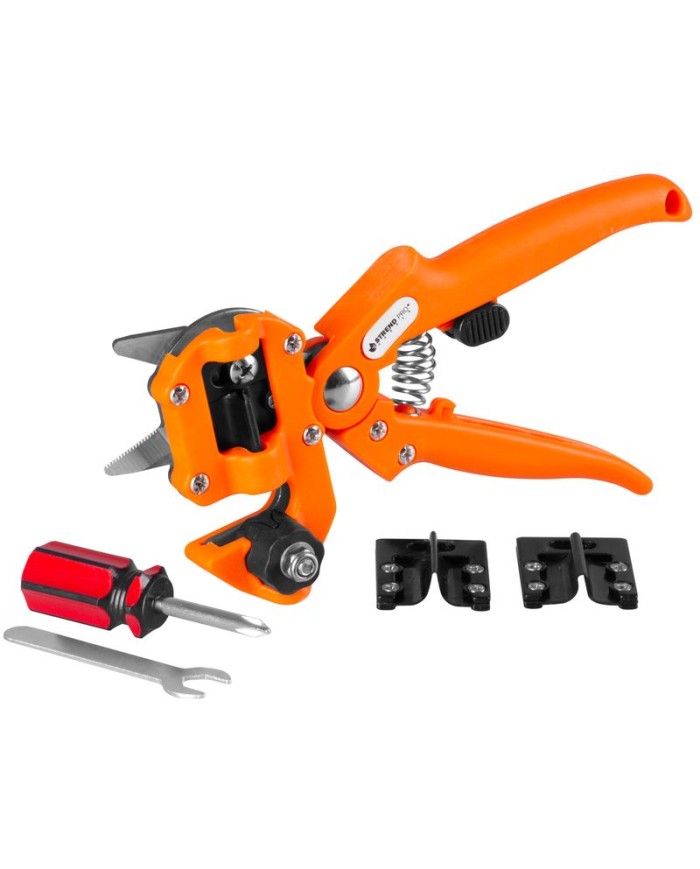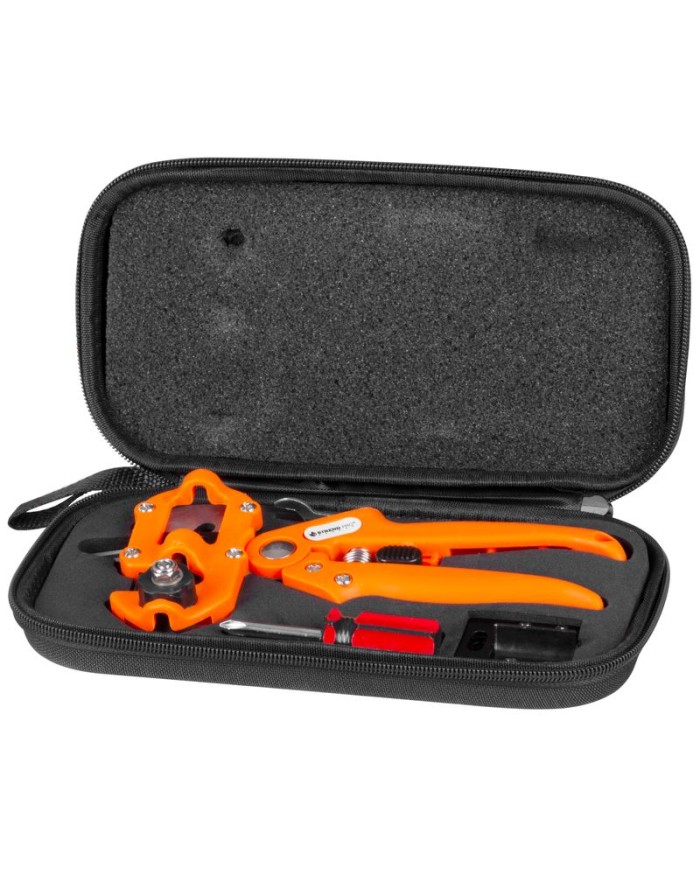Vrúbľovacie kliešte Strend Pro 2v1 sú určené na strihanie a vrúbľovanie napr. vinnej révy alebo ovocných stromov s priemerom konárov od 5 do 14 mm. Su zabalené v praktickom puzdre, ktoré obsahuje okrem klieštov aj vidlicový kľúč, šrubovák a 3 vrúbľovacie čepele.