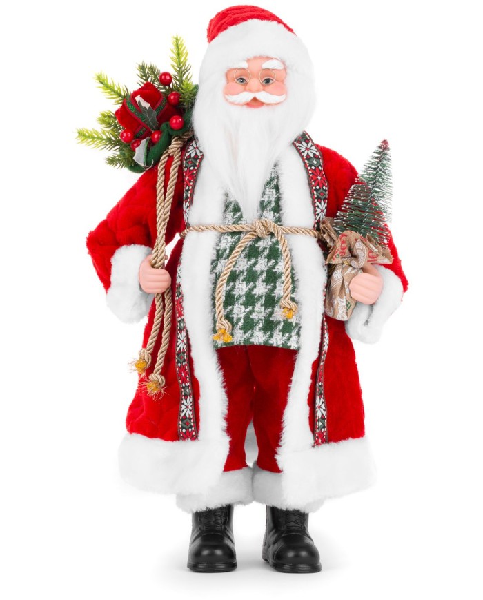Dekorácia MagicHome Santa s taškou s darčekmi a stromčekom je vkusným doplnkom výbavy vášho interiéru počas vianočných sviatkov. Dekorácia je vyhotovená z plastu, tkaniny, dreva a kovu. Výška je 46 cm.
