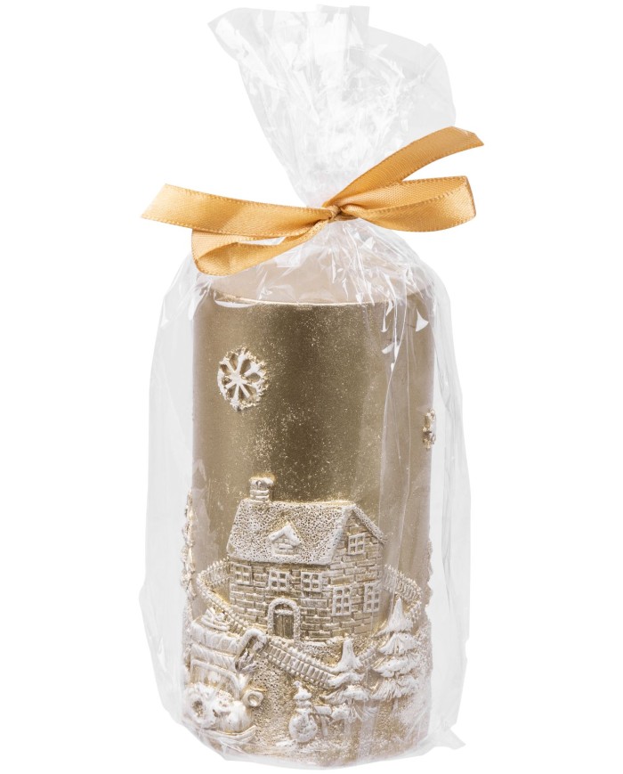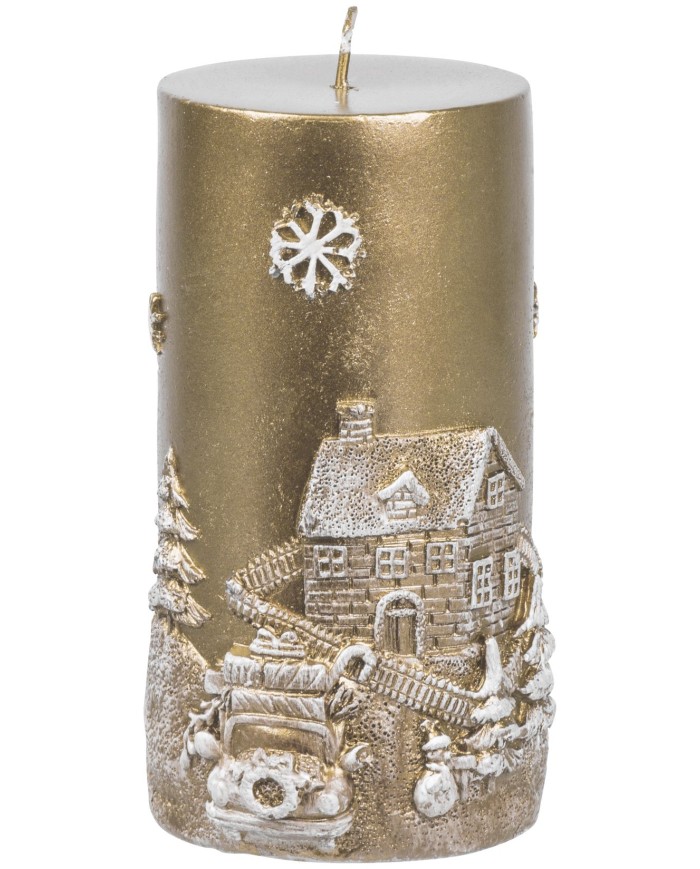 Sviečka MagicHome Vianoce, 7x12,5 cm, zlatá, s 3D krajinkou
