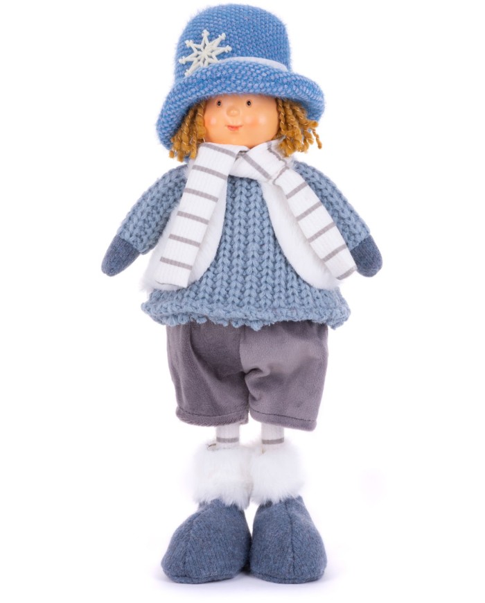 Postavička MagicHome Vianoce, Chlapček s modrým klobúkom, modrý, látkový, 16x10x36 cm