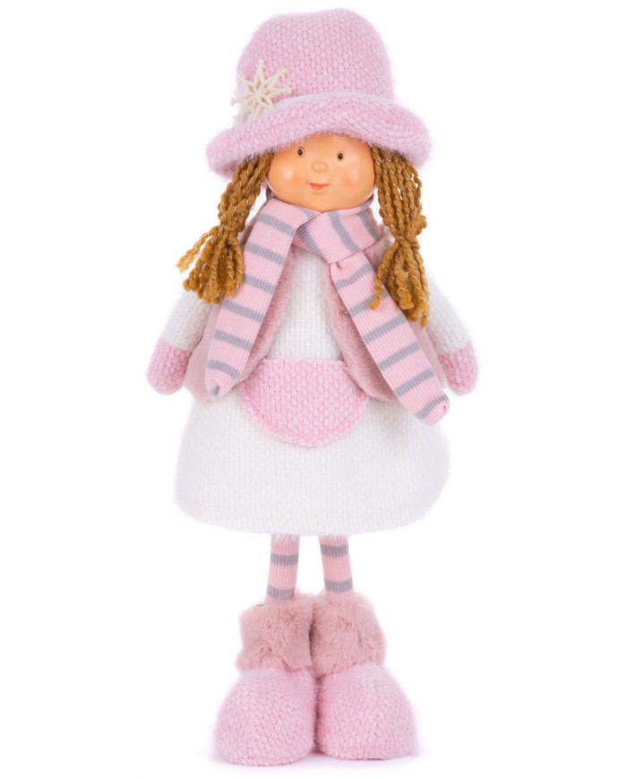 Postavička MagicHome Vianoce, Dievčatko s ružovým klobúkom, ružové, látkové, 16x10x36 cm