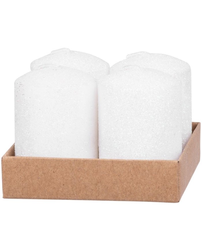 Sviečka MagicHome Vianoce, 4x6 cm, valcová, bal. 4 ks, biela, s glitrami, adventná