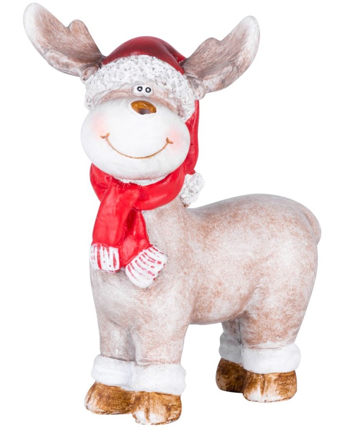 Dekorácia MagicHome Vianoce, Sob s červeným šálom, polyresin, 20x20x24 cm