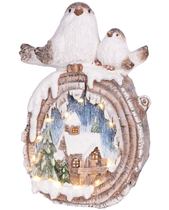 Dekorácia MagicHome Vianoce, Vtáčiky s domčekmi, LED, keramika, 3xAAA, 33,3x16,5x47 cm