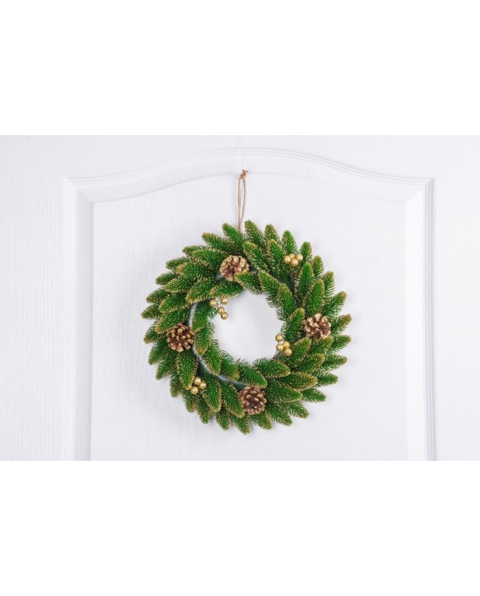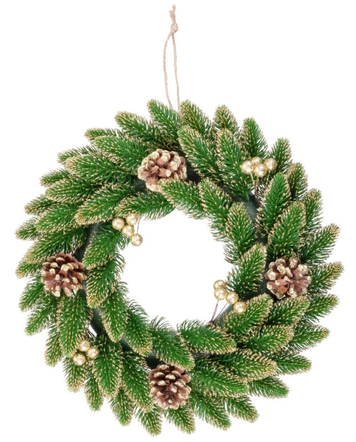 Veniec MagicHome Vianoce, prírodný, pozlátený, 33 cm