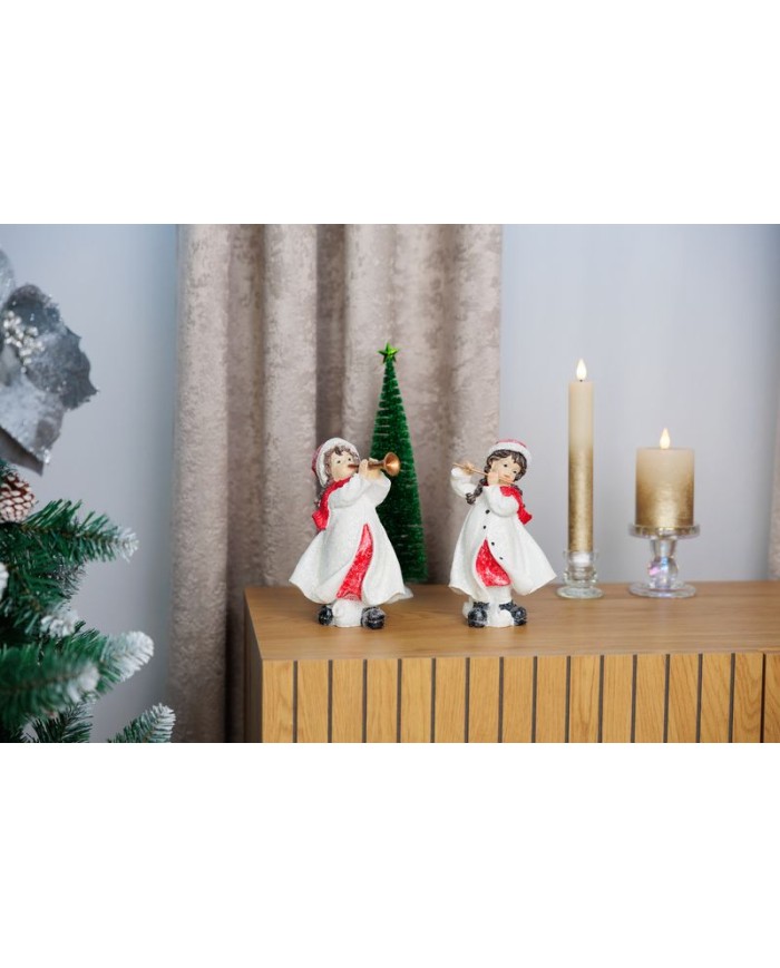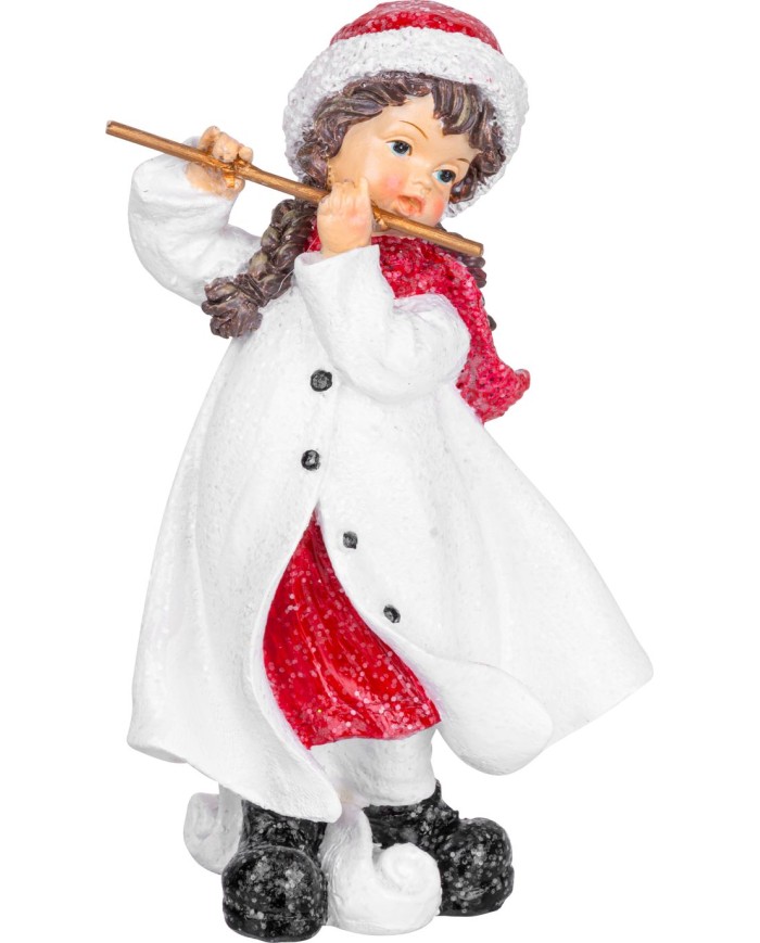 Dekorácia MagicHome Vianoce, Dievčatko hrajúce na flautu, polyresin, 12x12x20 cm