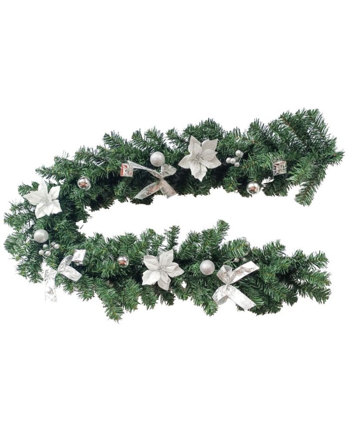 Girlanda MagicHome Vianoce, ozdobená, strieborná, 180 cm