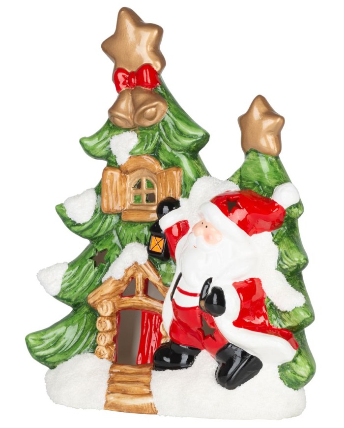 Krásna dekorácia MagicHome stromček so santom skrášli váš domov počas vianočného obdobia. Je to vianočná dekorácia s LED osvetlením. Farba LED je teplá biela a počet LED je 1. Disponuje funkciou jednoduchého svietenia a spínačom ON/OFF. Napájanie zabezpečujú 2 x AAA batérie, ktoré nie sú súčasťou balenia. Dekorácia slúži len na vnútorné používanie. Materiál je terakota. Rozmery sú 27,3x11x34 cm.