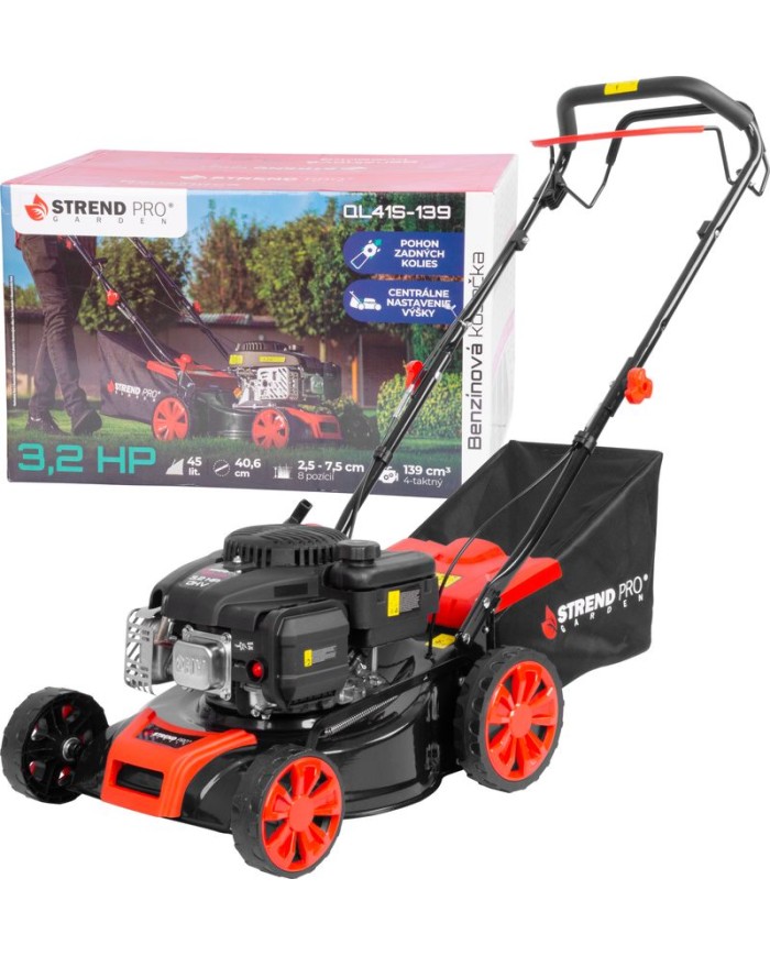 Benzínová záhradná kosačka Strend Pro QL41S-139 určená na kosenie trávy je nevyhnutnou súčasťou každej záhrady. Kosačka je vybavená motorom LC1P65FE-4 s obsahom 139 cm3 s menovitým výkonom 2,4 kW. Kosačka umožňuje vybrať si z 8 pozícií výšky kosenia v rozsahu 25 - 75 mm. Šírka záberu pri kosení dosahuje 40 cm. Je tiež vybavená praktickým zberným košom s objemom 45 litrov. Kosačka pracuje rýchlosťou až 3600 otáčok/min.
