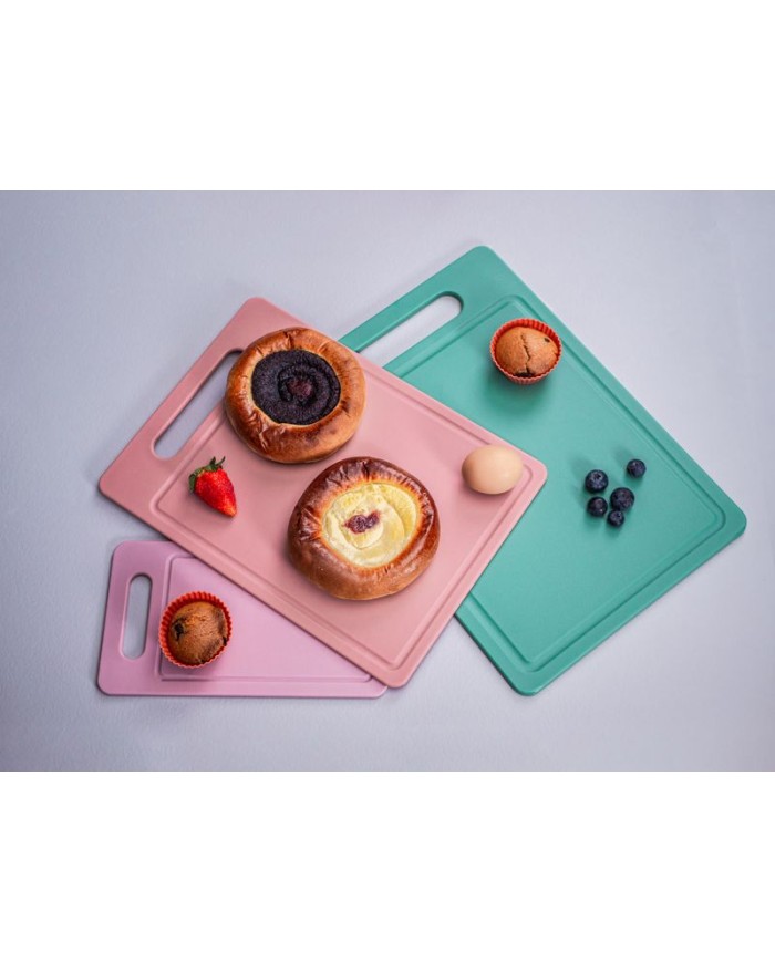 Plastová doska na krájanie pokrmov MagicHome v modernej pudrovej farbe s rozmermi 38x26x0,78 cm.