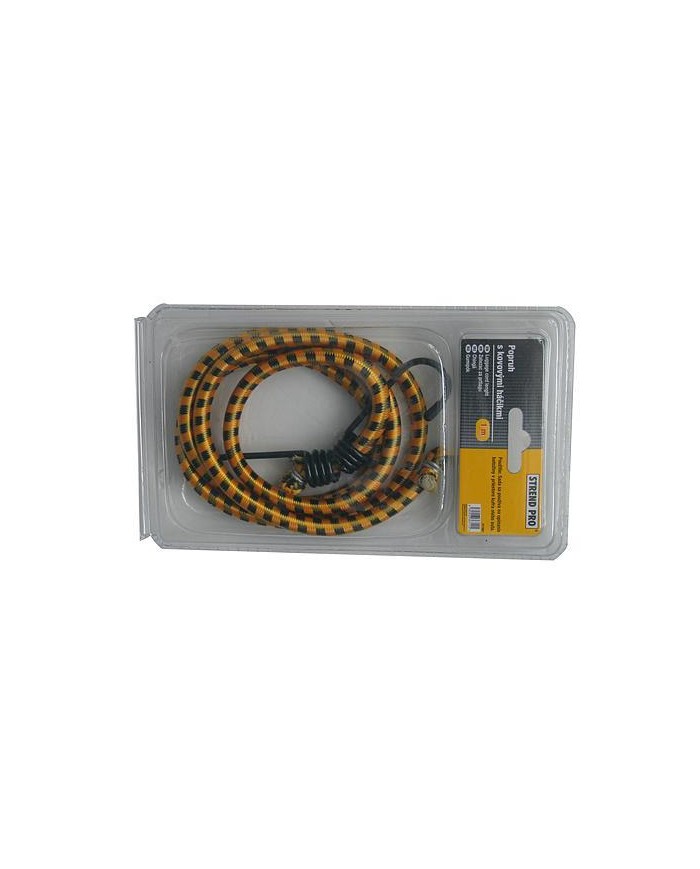 Upínacia guma Strend Pro s oceľovými háčikmi slúži na fixáciu predmetov. Jej priemer je 8 mm a dĺžka je 100 cm.