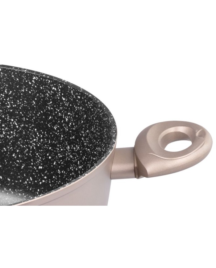Ak si potrpíte na kvalitné kuchynské riady, tento hrniec je pre Vás ako stvorený. Hrniec s pokrievkou MagicHome Coffee Brown Line je vyrobený zo zliatiny hliníka s nepriľnavým povrchom a vnútorným 2-vrstvovým mramorovým náterom. Vonkajší povrch obsahuje matný hnedý teplovzdorný náter. Má 3 mm indukčné dno, ktoré šetrí energiu. Rukoväť je vyrobená z bakelitu s ochranou proti plameňu. Hrniec je vhodný na všetky typy sporákov: indukcia, elektrika, plyn, sklokeramika a halogén a je tiež vhodný do umývačky riadu. Nevhodný do rúry na pečenie. Je šetrný k životnému prostrediu, neobsahuje PFOA, PFOS, VOC, PB ani CD. Objem: 4 litre.