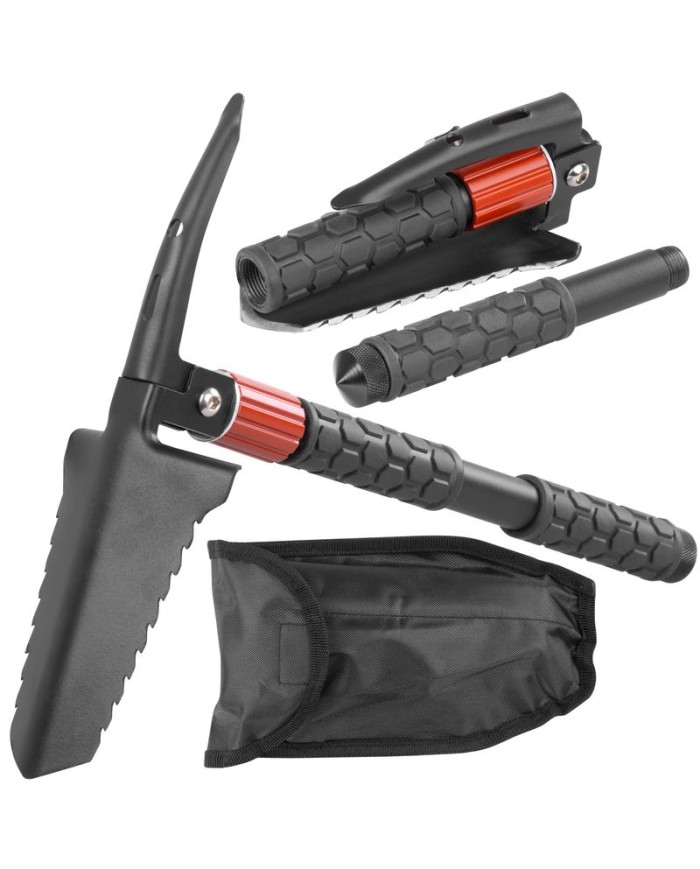 Skladacia multifunkčná lopata Strend Pro je praktický nástroj, ktorý využijete kdekoľvek v prírode, teréne, záhrade, pri rybolove či kempovaní. V jednom nástroji nájdete až8 rôznych funkcií: lopata, motyka, rýľ, krompáč, pílka na korene, kresadlo, vyťahovač klincov a oceľová špička na rukoväti pre núdzové rozbitie skla. Skladacia rukoväť. Lopata je zabalená v praktickom puzdre, ktoré jednoducho pripnete na opasok. Rozmery rozloženej lopaty: dĺžka: 36 cm, šírka: 28 cm. Rozmery lopatky: dĺžka: 14 cm, šírka: 9,5 cm.