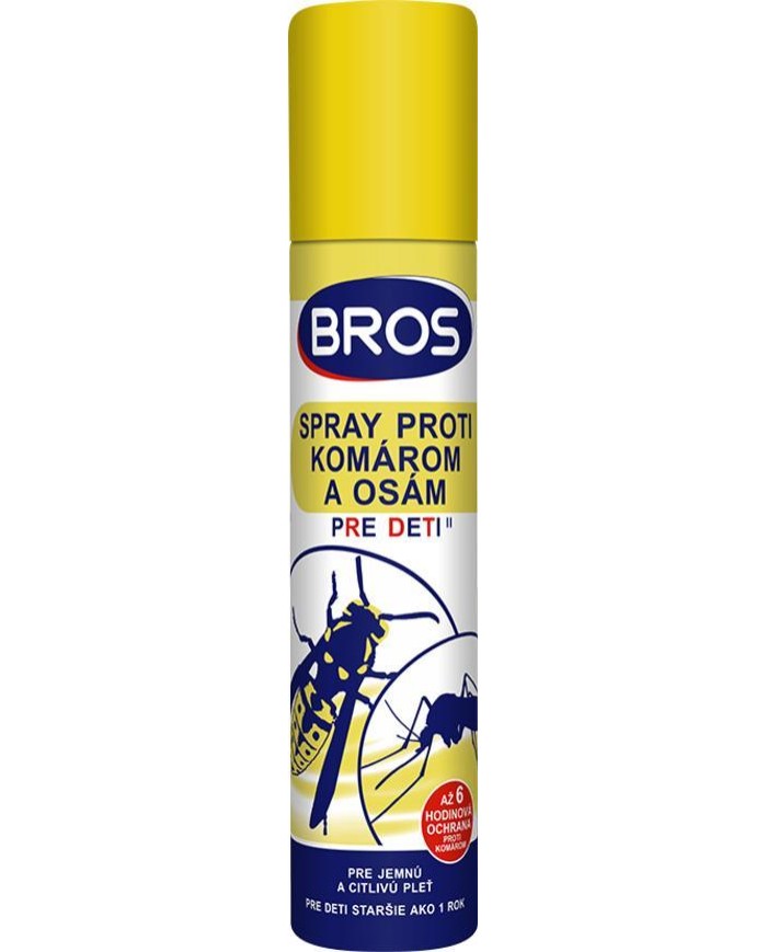 Sprej Bros je príjemne voňajúci sprej, ktorý chráni pred uštipnutím od komárov a pred bodnutím osou. Vďaka špeciálnej aktívnej zložke je produkt vhodný pre deti a osoby s citlivou pokožkou. Vhodný pre deti staršie ako 1 rok. Sprej odpudzuje komáre po dobu až 6 hodín a osy po dobu až 4 hodín. Vďaka obsahu D-panthenolu zvlhčuje a jemne sa stará o pokožku. POUŽITIE: Pred použitím pretrepať. Aplikujte na miesta náchylné ku uhryznutiu zo vzdialenosti 15 cm. Pri nanášaní na hlavu a krk najprv produkt nastriekajte na dlane rúk a následne naneste na hlavu a krk. Opakujte postup iba v prípade potreby.