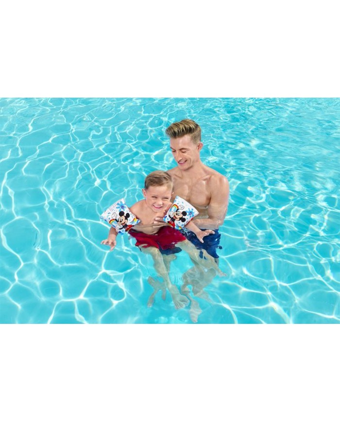 Detské rukávniky zaujmú svojím farebným prevedením a dizajnom Mickey&Friends. Sú skvelou pomôckou pri plávaní. Vďaka nim sa deti cítia bezpečne a naučia sa plávať. Rukávniky sú vybavené bezpečnostnými ventilmi s poistkou a dvoma vzduchovými komorami, vďaka ktorým udržia vaše dieťa vždy v bezpečí.