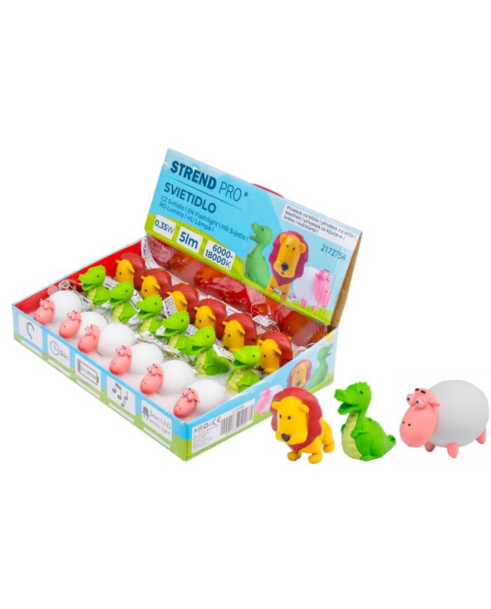 Využite výhodu kľúčenkového svietidla Strend Pro a získajte praktický, kompaktný a prenosný zdroj svetla, ktorý vám bude slúžiť nielen ako osvetlenie kľúčov pri odomykaní, ale aj ako bezpečnostný prvok či skvelý pomocník v situáciách, pri ktorých si potrebujete rýchlo posvietiť. V troch veselých dizajnoch - drak, ovečka a lev, ktoré navyše nielen svietia, ale aj vydávajú zvuk. Sellbox obsahuje 18 ks svietidiel. Uvedená cena je za 1 ks.