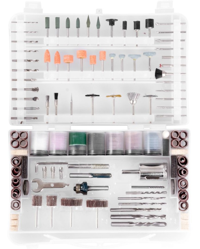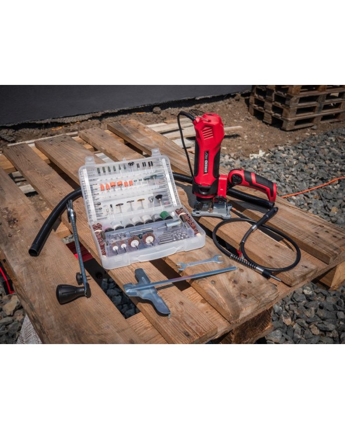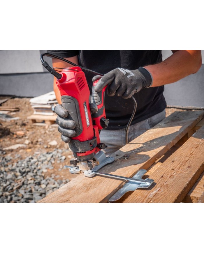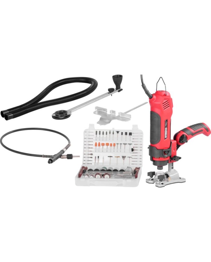 Multifunkčná fréza Strend Pro s príkonom 550 W je ideálna pre každého domáceho majstra. Bohaté príslušenstvo umožňujerezanie všetkými smermi a uhlami, vŕtanie, ostrenie, detailné brúsenie, leštenie, tvarovanie, frézovanie, drážkovanie, čistenie či gravírovanie. Vďaka ľahko regulovateľnej rýchlosti je prechod rezania alebo brúsenia rôznych materiálov pohodlný a ľahký. Zvládne obrábať široké spektrum materiálov:tvrdé a mäkké drevo, MDF dosky, preglejka, sadrokartón, sklo, plast, sklolaminát, betón, keramika, obklad, mramor, tenký hliník.K multifunkčnej frézke môžete pripojiť stojan alebo nadstavec s bovdenom na použitie ako priama brúska. Stojan je vybavený polohovateľno u rukoväťou a odnímateľným protiprašným krytom s vývodom na pripojenie hadice na odsávanie prachu. Umožňuje tiež pripojiť pozdĺžny doraz (na rezanie rovnobežné s hranou) alebo nastaviť hĺbku opracovania, čo umožňuje použiť frézu na drážkovanie.