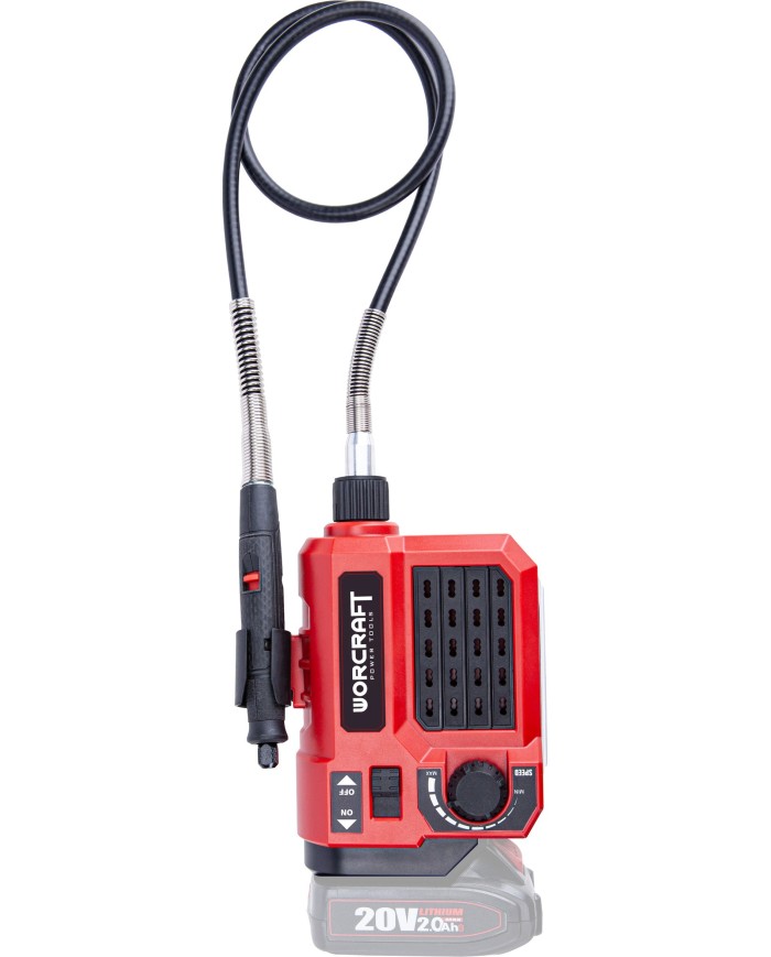 Akumulátorová priama brúska Worcraft CEMG-S20Li sa používa na detailné obrábanie kovov, plastov, dreva a podobných materiálov s použitím vhodného obrábacieho nádstavca. Ľahké ovládanie zaručuje pohodlnú manipuláciu pri práci. Dosahuje rýchlosť otáčok od 5 000 - 33 000 min-1, ktoré si nastavíte regulátorom otáčok. Súčasťou balenia je gravírovací hrot, špicatá diamantová frézka, oceľová kefka, HSS vrtáky, unášače, kotúče, sada brúsnych papierov a teliesok.