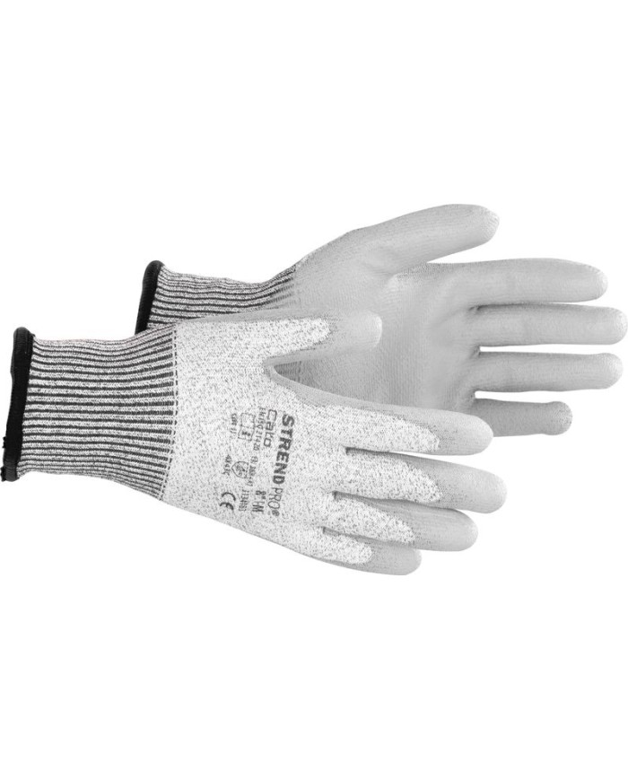 Rukavice Strend Pro Cato sú bezšvové protiporezové ochranné rukavice vyrobené z 13G HPPE a sklolaminátu s vynikajúcou odolnosťou proti oderu a porezaniu ostrím. Dlaň a prsty sú potiahnuté vrstvou sivého polyuretánu. Práca v týchto rukaviciach je komfortná, keďže sú priedušné, majú vynikajúcu priľnavosť v suchých podmienkach a poskytujú vynikajúci cit v prstoch. Sú určené na ochranu kože pred mechanickými rizikami, s úrovňou ochrany 4X43C (podľa EN388: 2016+A1:2018). Veľkosť: 10"/XL. Balenie obsahuje 12 párov rukavíc.