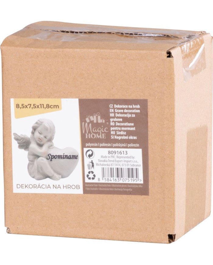 Keramická dekorácia anjela so srdcom je vkusná a decentná ozdoba vhodná nielen na hrob, ale aj ako dekorácia do smútočných aranžmánov a ikebán. Zaujímavým prvkom je slovenský nápis Spomíname.