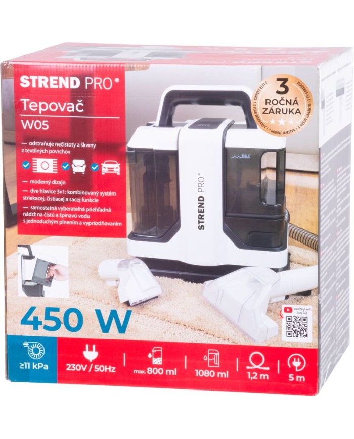 Tepovač Strend Pro je praktický pomocník na odstraňovanie nečistôt a škvŕn z rôznych textilných povrchov, ako sú koberce, čalúnený nábytok či interiéry automobilov. Vďaka svojim kompaktným rozmerom je ideálny na rýchle a pohodlné použitie.