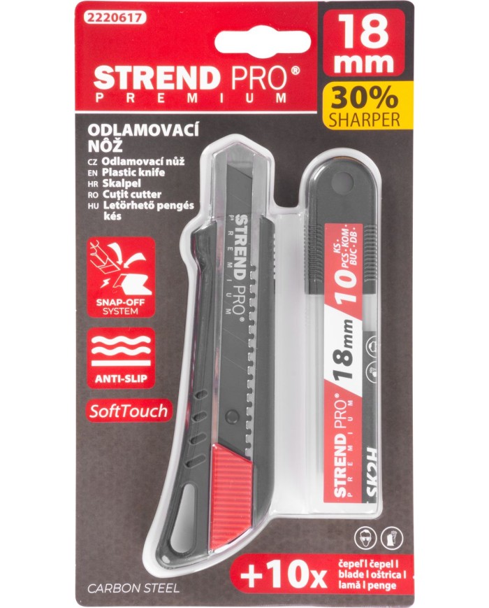 Nôž Strend Pro Premium FD781, BlackMatt, SoftTouch, 18 mm, odlamovací, + 10 ks čepelí, set