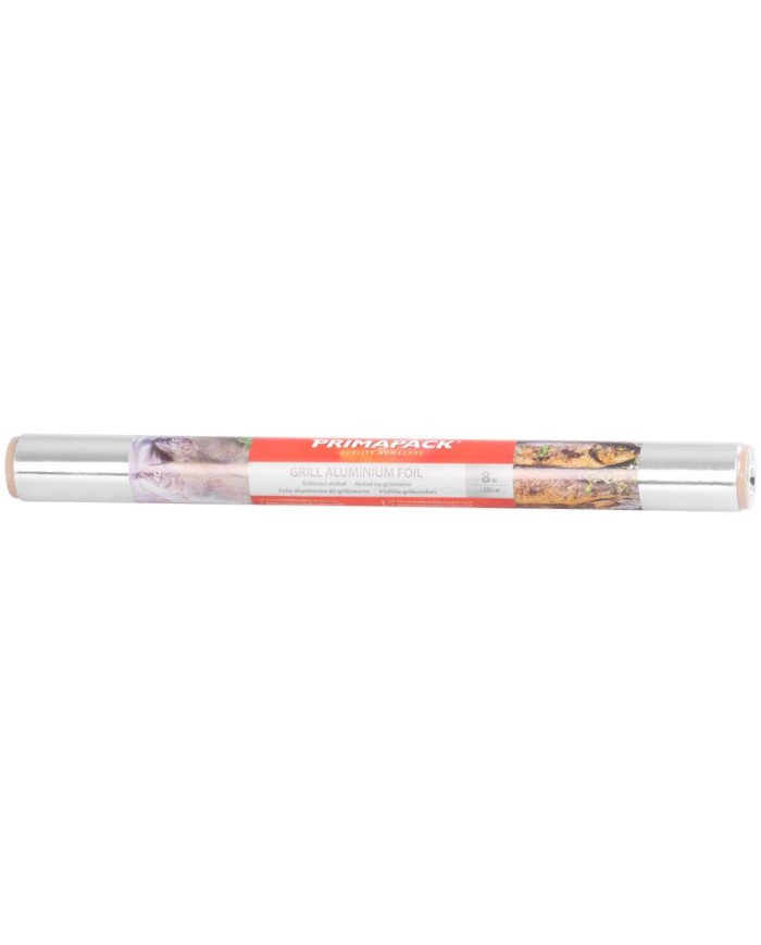 Grilovací alobal Primapack je vhodný pre prípravu pokrmov na grile a v rúre na pečenie. Extra silný, nerozpustný, odoláva vysokým teplotám. Ľahko sa tvaruje a odtrháva. Balenie obsahuje 8 m alobalu.