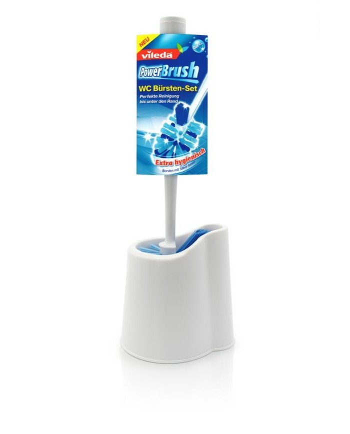 WC set s tromi druhmi štetín. Štetiny obsahujú strieborné ióny pre väčšiu hygienickú čistotu. Dlhšie mäkšie štetiny k jemnému odstráneniu nečistôt na väčšej ploche. Kratšie tuhšie štetiny pre odstránenie silnejších nečistôt. Špeciálne kónické štetiny k čištěniu ťažko dostupných miest pod okrajom toalety.