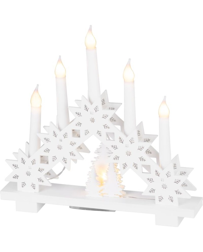 Svietnik MagicHome je vkusným doplnkom vášho interiéru počas vianočných sviatkov. Je to vianočná dekorácia s LED osvetlením. Farba LED je teplá biela a počet LED je 6. Disponuje funkciou jednoduchého svietenia. Stupeň ochrany je IP20 a dekorácia je vhodná do interiéru. Menovité napätie je 3 V a menovitý príkon je 0,3 W. Napájanie zabezpečujú 2 x AA batérie, ktoré nie sú súčasťou balenia. Svetelné zdroje nie sú vymeniteľné. Rozmer je 32x5x30,5 cm.