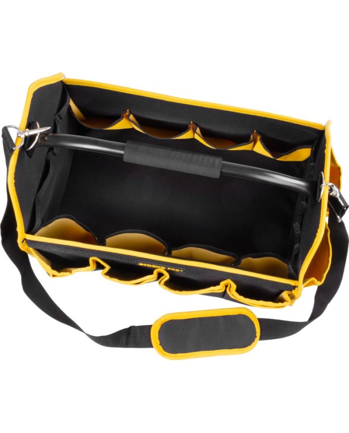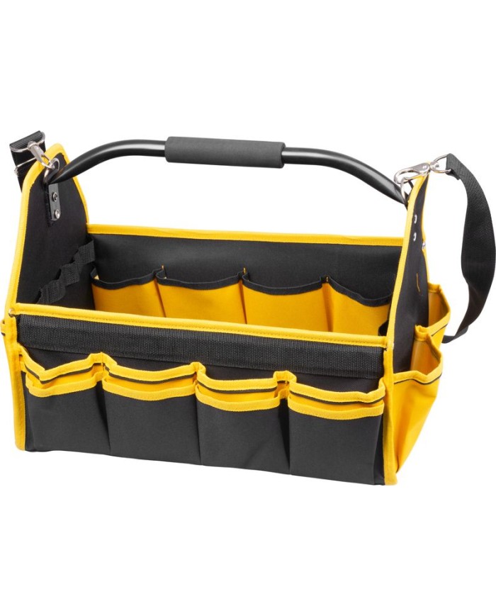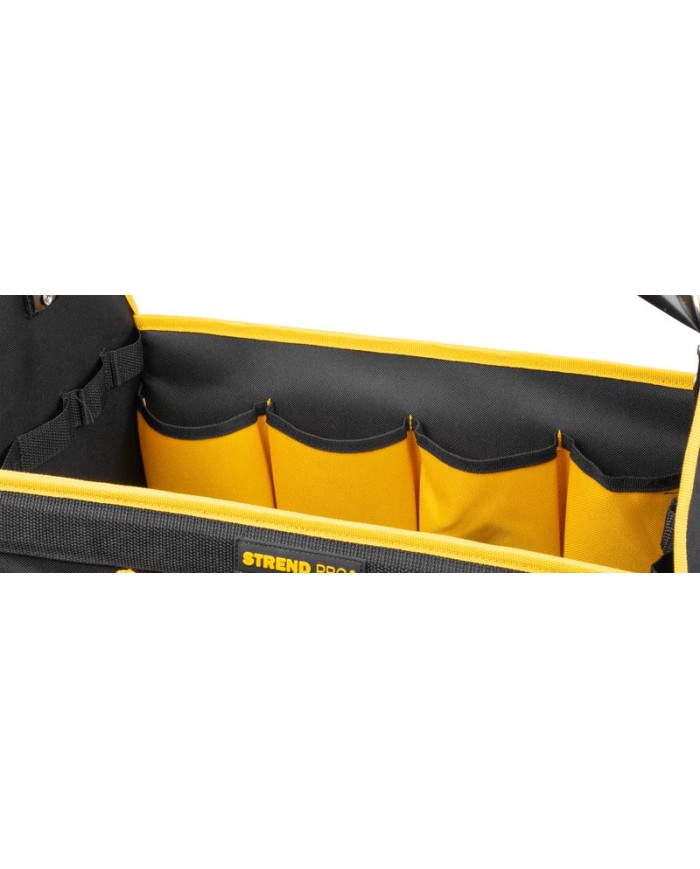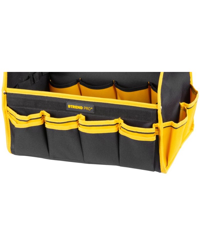Praktická brašňa Strend Pro na ťažké náradie je praktickým pomocníkom pre každého majstra a kutila. Obsahuje množstvo bočných vreciek na uloženie menšieho náradia. Pripojiteľný ramenný popruh pre komfortné prenášanie. Maximálna nosnosť: 20 kg. Rozmery: 45x28x33 cm.