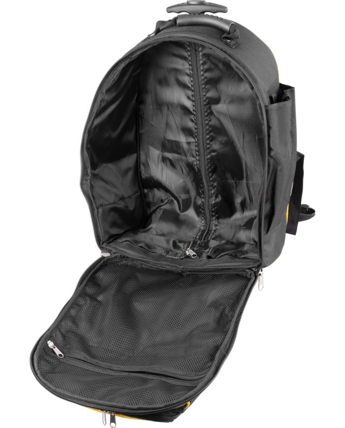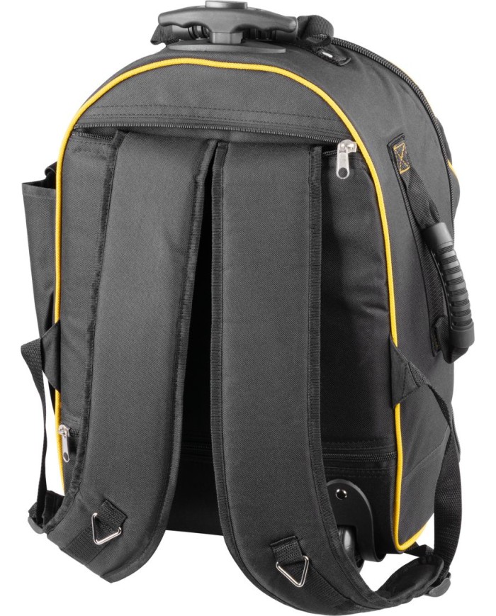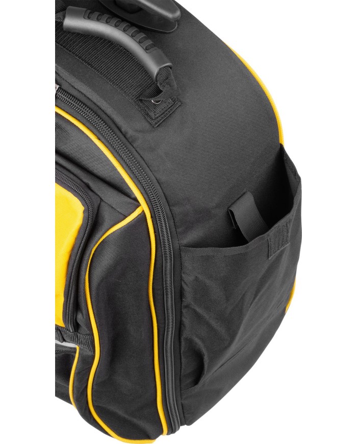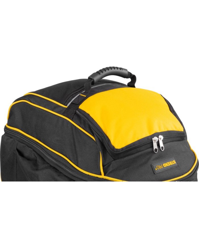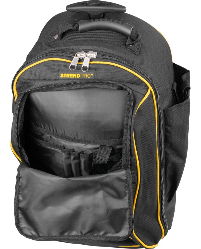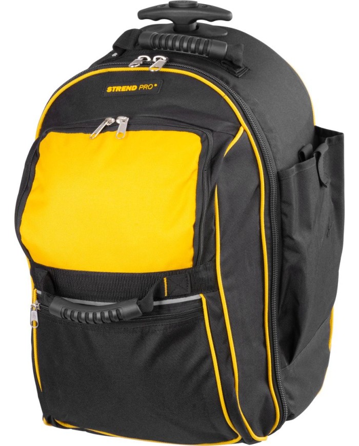 Praktický batoh Strend Pro na náradie je praktickým pomocníkom pre každého majstra a kutila. Obsahuje bočné vrecká na uloženie menšieho náradia. Možnosť použiť aj ako kufor na náradie, keďže obsahuje rukoväť a kolieska. Uzatvárateľný zipsom. Maximálna nosnosť: 20 kg. Rozmery: 36x25x54 cm.
