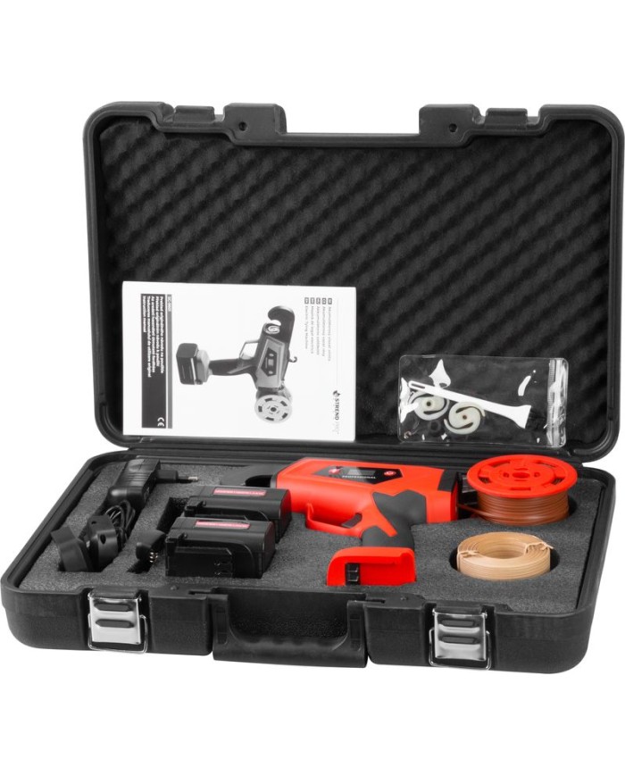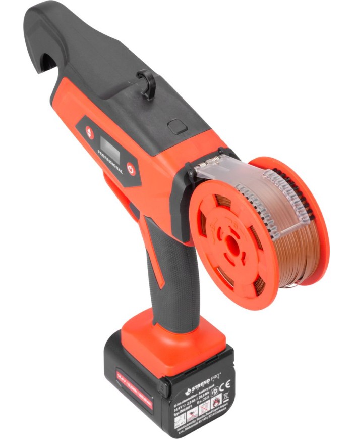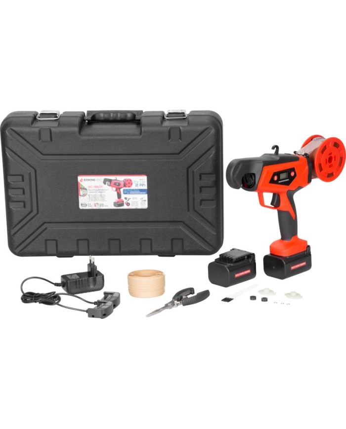 Akumulátorový viazač viniča Strend Pro Profesional s LCD displejom sa používa najmä na viazanie výhonkov viniča (eventuálne ostatných rastlín) s priemerom maximálne do 25 mm. Výrazne uľahčuje prácu vo vinosadoch, práca je nielen jednoduchá, ale uviazaný spoj je aj oveľa kvalitnejší ako pri ručnom viazaní. Na jedno nabitie umožňuje až 8000 uviazaní. Balenie obsahuje: 1x viazač, 2x akumulátor 2.0 Ah, 1x dvojnabíjačku, 1x viazací drôt v papieri, 1x viazací drôt v plaste, kliešte, kefku a náhradné diely.