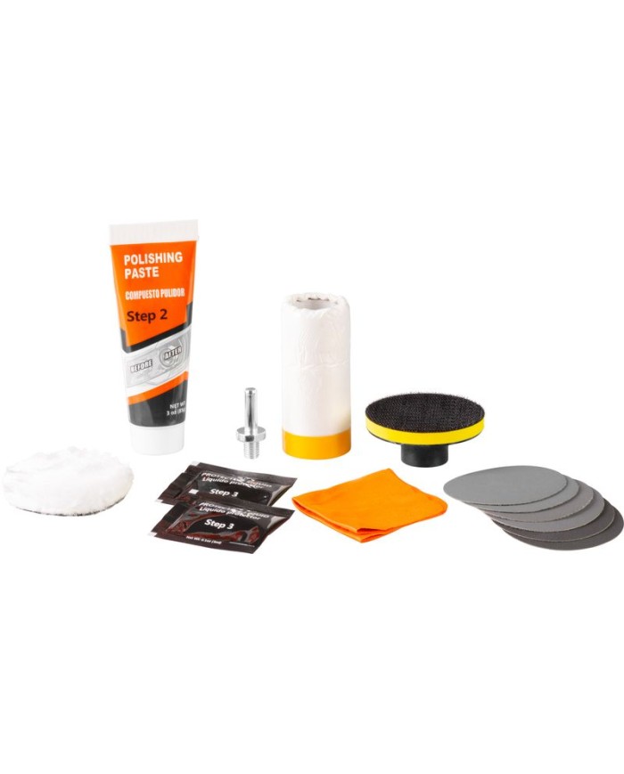 Obnovte jas a vzhľad vašich predných svetlometov s profesionálnou 14-dielnou sadou Strend Pro na renováciu svetlometov. Táto sada je ideálna pre všetkých, ktorí chcú odstrániť oxidáciu, zažltnutie a jemné škrabance zo svojich svetlometov, a tým zlepšiť ich vzhľad a svetelný výkon.